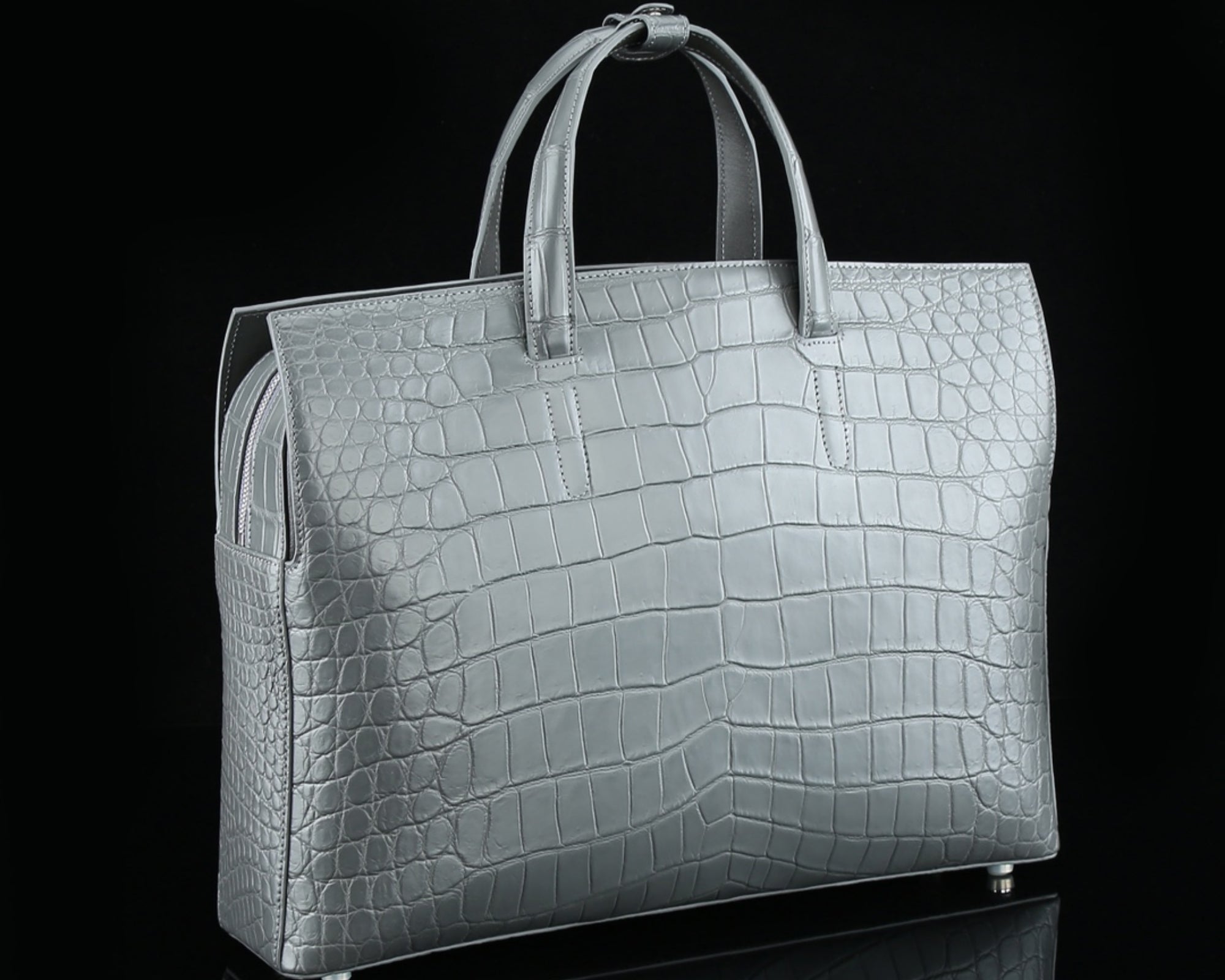 Each BELTLEY briefcase is carefully handcrafted by master artisans. To ensure perfect scale alignment and color harmony, it takes 3–4 matching crocodile skins to complete a single bag. The crafting process requires 2–3 weeks, representing BELTLEY’s commitment to patience and precision.